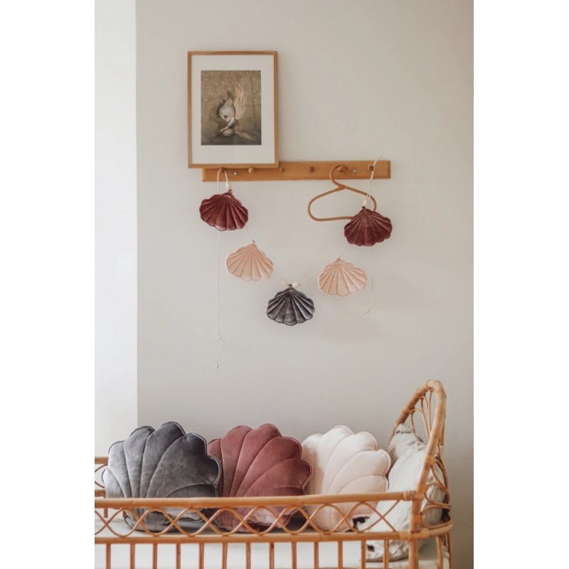 Aksamitna Girlanda składa się z 5 solidnie wykonanych, aksamitnych muszelek w trzech różnych kolorach, dlatego pasuje do wielu tipi i poduszek z naszej oferty. Muszelki zawieszone są na bawełnianym sznurku, dodatkowo ozdobione drewnianymi koralikami.