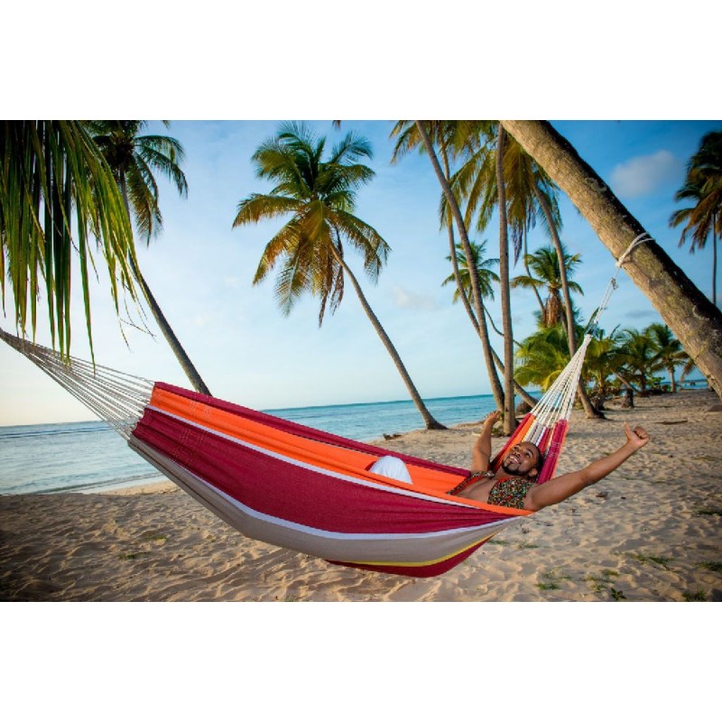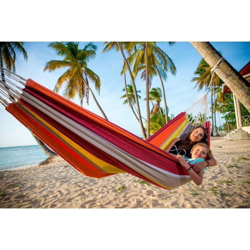 Z Brazylii, ojczyzny sjesty i celebrowania wypoczynku, pochodzi ten cudowny hamak. Jest bardzo duży i wygodny, dzięki maksymalnemu obciążeniu jest w stanie pomieścić więcej niż jedną dorosłą osobę!