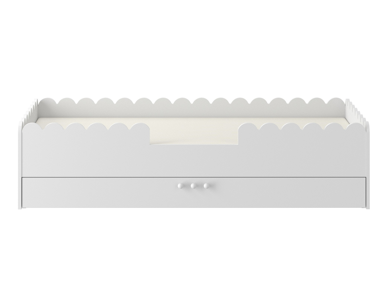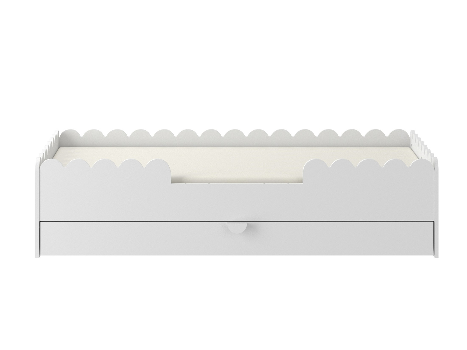 Model wyposażono w stałe barierki ochronne na trzech stronach, które zabezpieczają przed wypadaniem w trakcie snu. Przednie barierki są zdejmowane — w zależności od etapu rozwoju dziecka możesz je regulować lub zupełnie zdemontować.