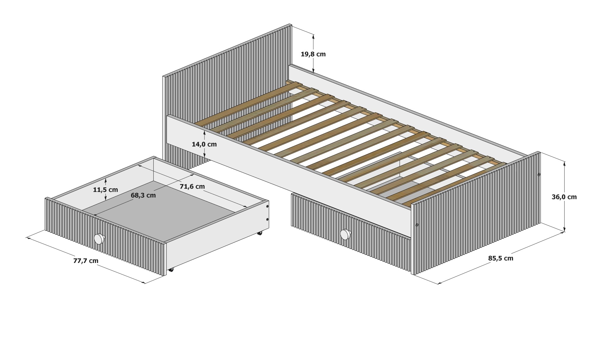 Nowoczesne łóżko dziecięce LOFT z szufladami – tapczan jednoosobowy 160x80