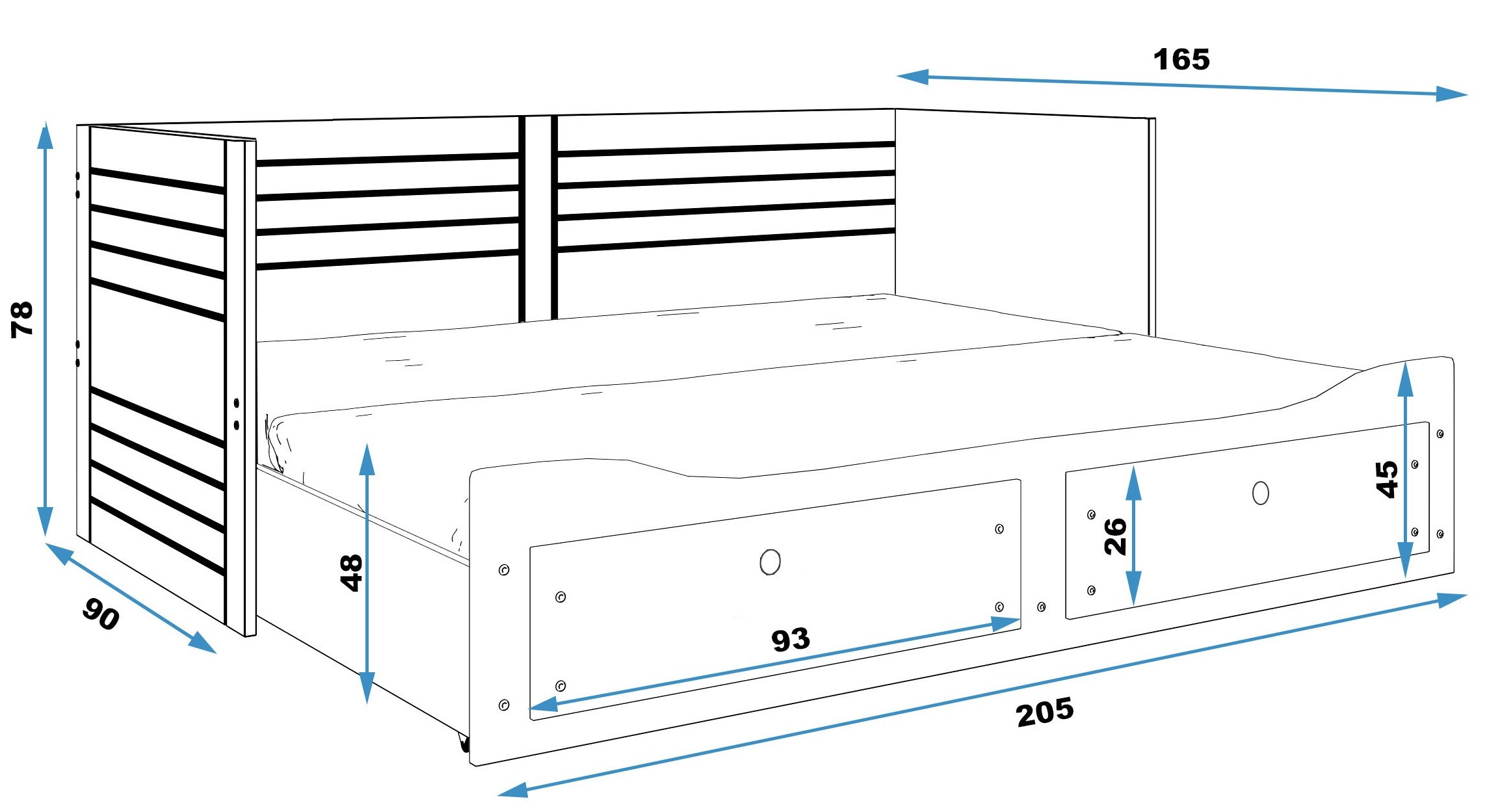 - Dodatkowe miejsce do przechowywania – dwie wysuwane szuflady umożliwiają przechowywanie pościeli, ubrań czy zabawek, bez bałaganu.